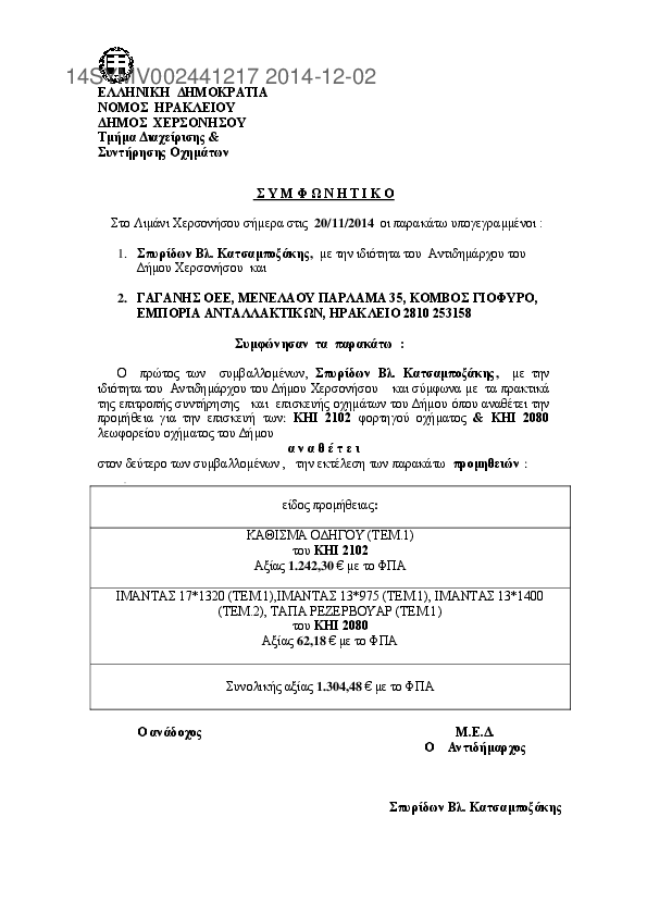 4. Σύμβαση για την προμήθεια & επισκευή οχημάτων του Δήμου