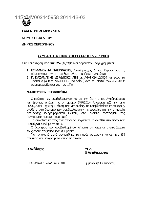 6. ΣΥΜΒΑΣΗ ΑΝΑΘΕΣΗΣ ΕΡΓΑΣΙΑΣ ΕΚΤΥΠΩΣΗΣ ΠΛΗΡΟΦΟΡΙΑΚΟΥ ΥΛΙΚΟΥ 349/2014