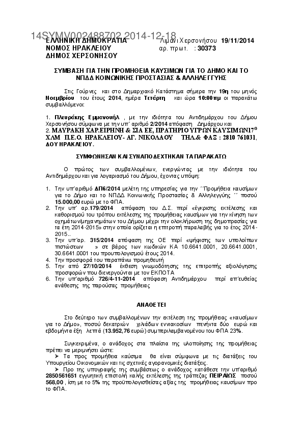 8. Σύμβαση για την προμήθεια καυσίμων