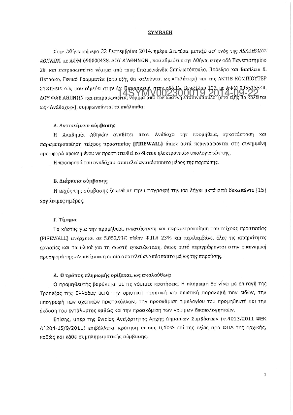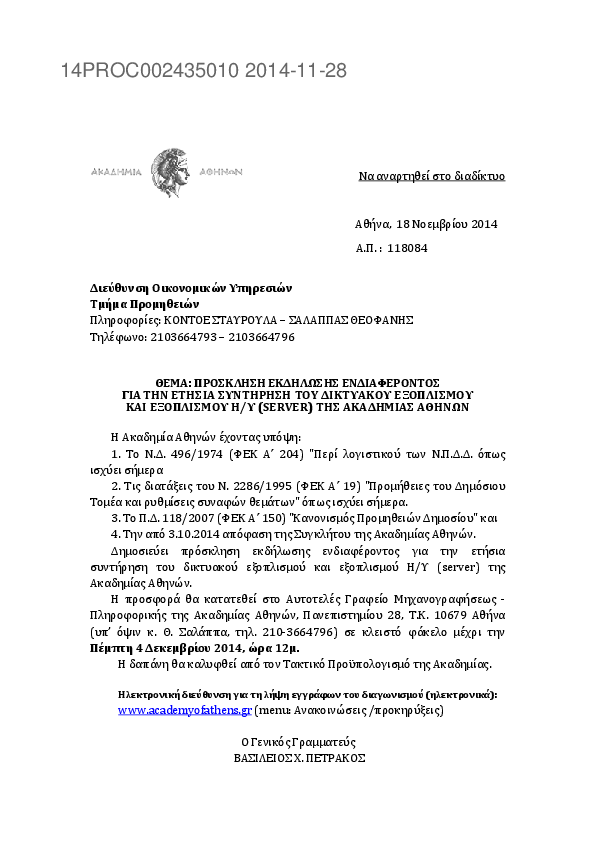 7. ΠΡΟΣΚΛΗΣΗ ΕΚΔΗΛΩΣΗΣ ΕΝΔΙΑΦΕΡΟΝΤΟΣ ΓΙΑ THN ΕΤΗΣΙΑ ΣΥΝΤΗΡΗΣΗ TOY ΔΙΚΤΥΑΚΟΥ ΕΞΟΠΛΙΣΜΟΥΚΑΙ ΕΞΟΠΛΙΣΜΟΥ Η/Υ (SERVER) ΤΗΣ ΑΚΑΔΗΜΙΑΣ ΑΘΗΝΩΝ