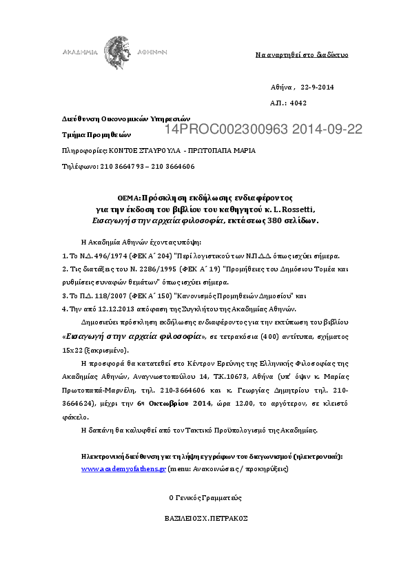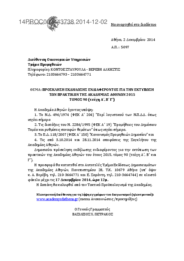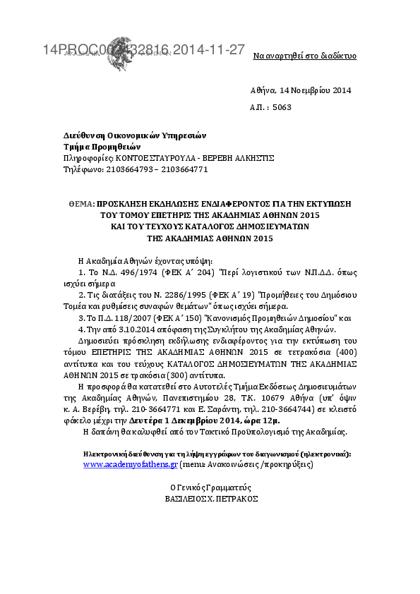 8. ΠΡΟΣΚΛΗΣΗ ΕΚΔΗΛΩΣΗΣ ΕΝΔΙΑΦΕΡΟΝΤΟΣ ΓΙΑ THN ΕΚΤΥΠΩΣΗ ΤΩΝ ΠΡΑΚΤΙΚΩΝ ΤΗΣ ΑΚΑΔΗΜΙΑΣ 2015