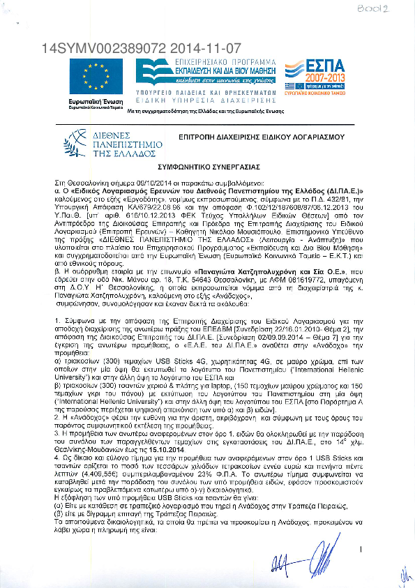 1. ΣΥΜΦΩΝΗΤΙΚΟ ΣΥΝΕΡΓΑΣΙΑΣ ΜΕ «Παναγιώτα Χατζηπολυχρόνη και Σία Ο.Ε.»