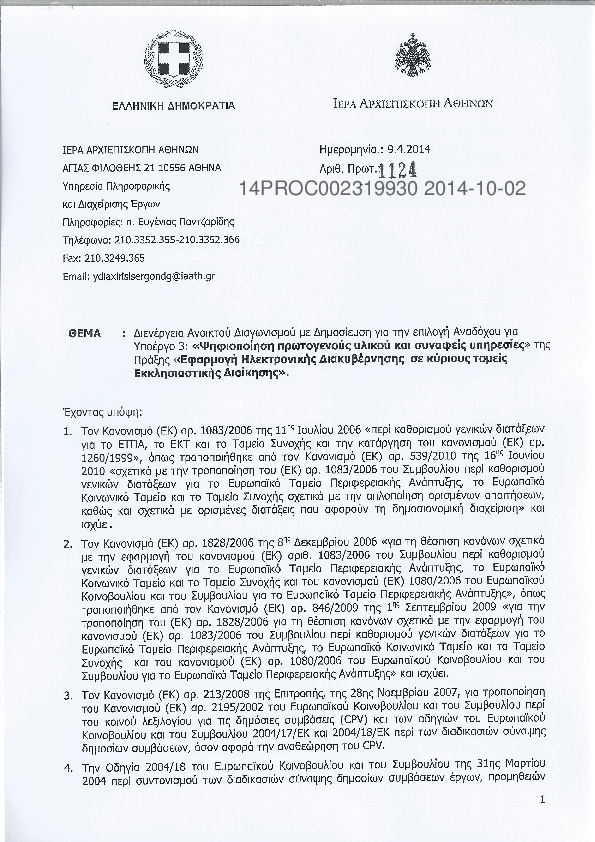 1. «Ψηφιοποίηση πρωτογενούς υλικού και συναφείς υπηρεσίες» της Πράξης ''Ε. Ηλεκτρονικής Διακυβέρνησης''