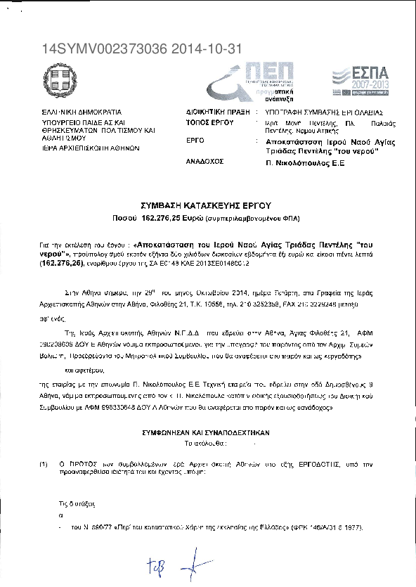 3. ΑΠΟΚΑΤΑΣΤΑΣΗ ΤΟΥ ΙΕΡΟΥ ΝΑΟΥ ΑΓ.ΤΡΙΑΔΑΣ ΠΕΝΤΕΛΗΣ 'ΤΟΥ ΝΕΡΟΥ''