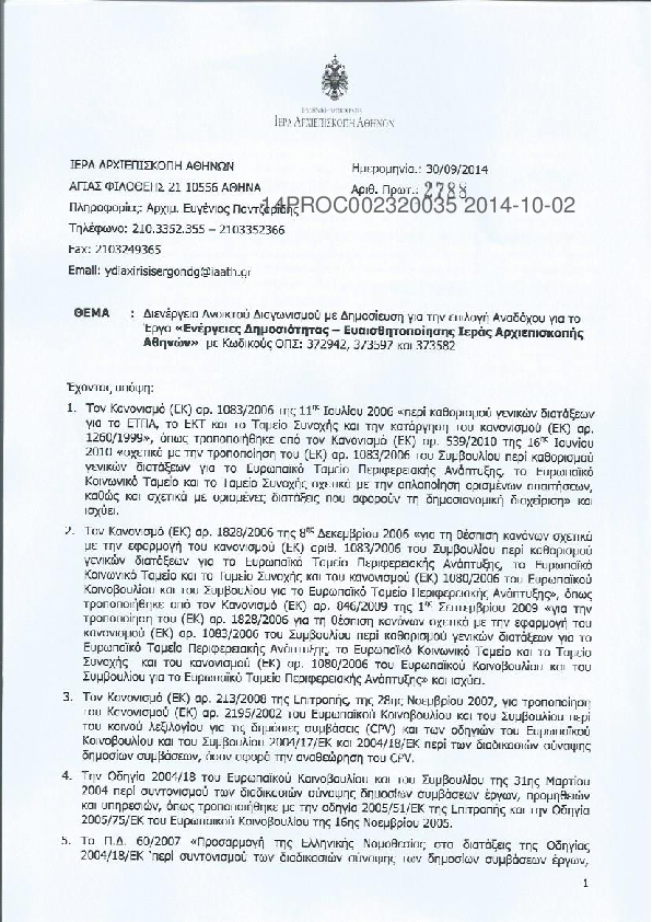 2. Ενέργειες Δημοσιότητας – Ευαισθητοποίησης Ιεράς Αρχιεπισκοπής Αθηνών