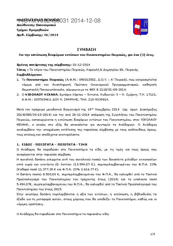 7. Εκτύπωση διαφόρων εντύπων του Παν/μίου Πειραιώς