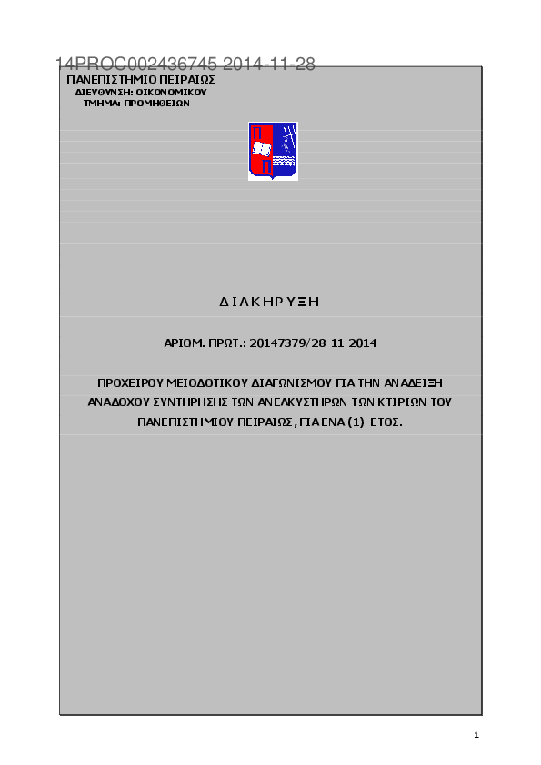 4. Πρόχειρος Μειοδ. Διαγων. για την ανάδειξη αναδόχου συντήρησης των ανελκυστήρων των κτιρίων