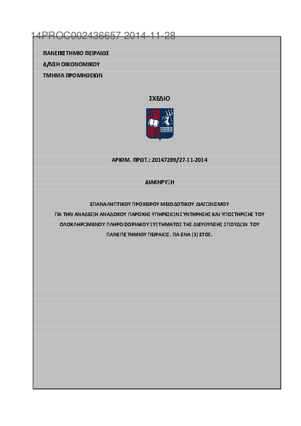 3. Επαν. πρόχειρος μειοδ. διαγων. για την ανάδειξη αναδόχου παροχής υπηρ.συντήρησης και υποστήριξης