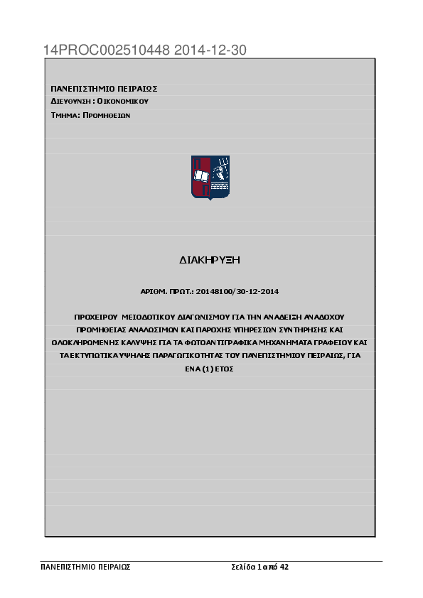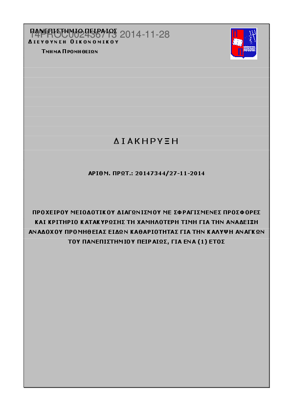 Αναζήτηση σε προκηρύξεις και συμβάσεις για: