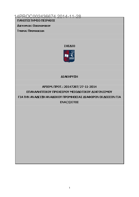 1. Επαν. πρόχειρου μειοδ. διαγωνισμού, για την ανάδειξη αναδόχου προμήθειας διαφόρων εκδόσεων