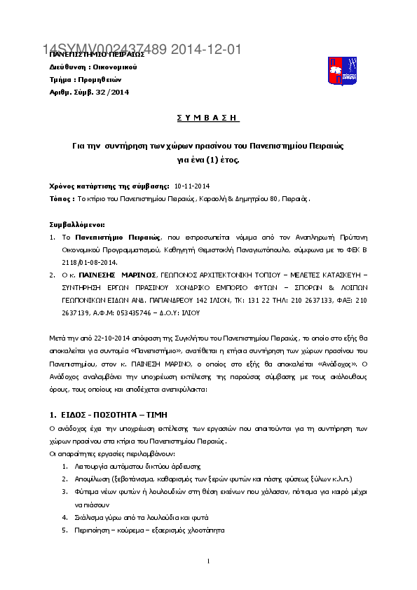 6. Συντήρηση των χώρων πρασίνου του Παν/μίου Πειραιώς