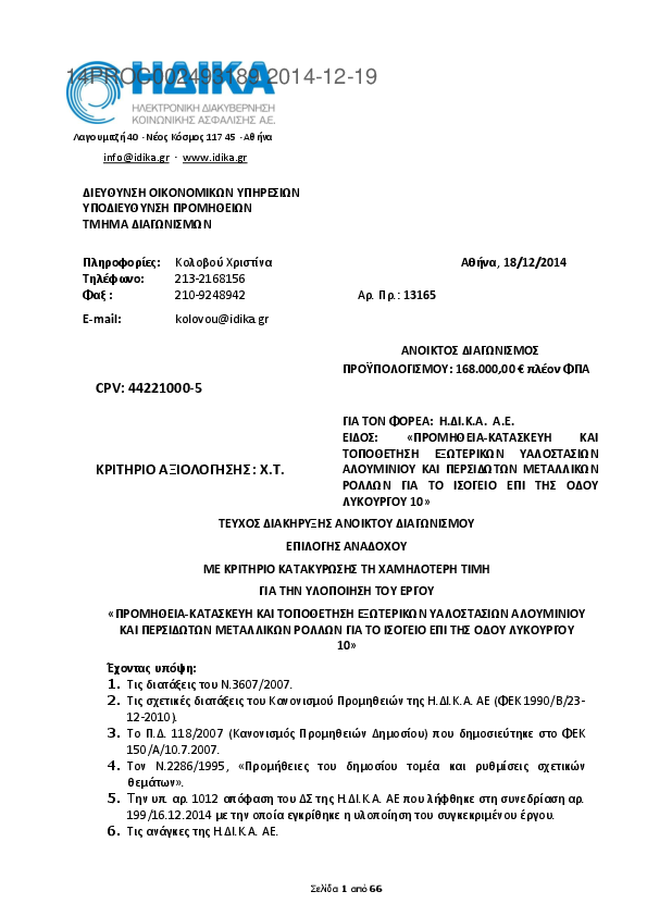 Αναζήτηση σε προκηρύξεις και συμβάσεις για: