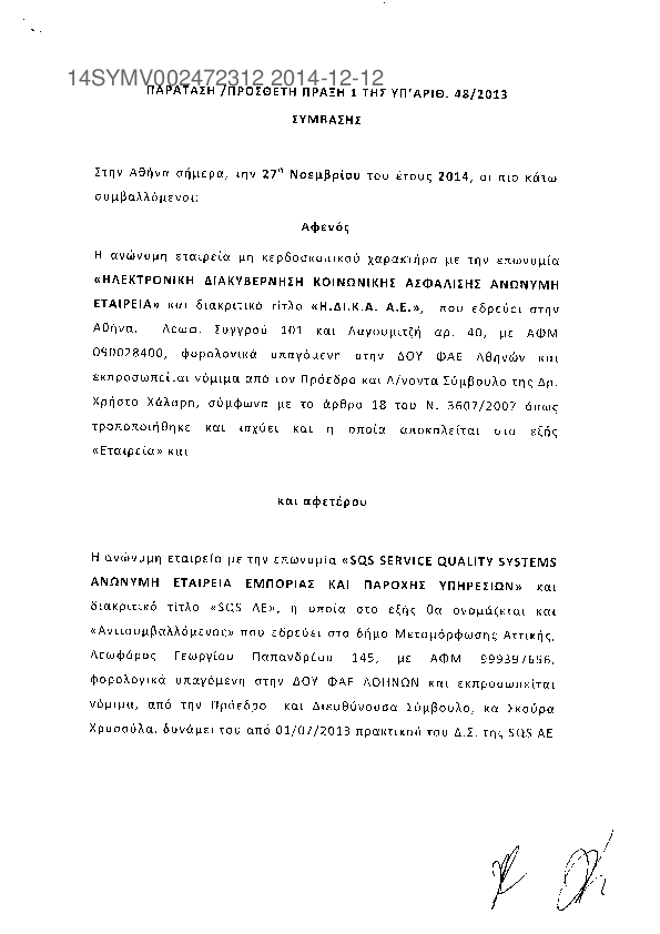 2. ΣΥΜΒΑΣΗ ΠΑΡΟΧΗΣ ΥΠΗΡΕΣΙΩΝ ΤΕΧΝΙΚΟΥ ΑΣΦΑΛΕΙΑΣ ΑΠΟ SAFEMED ΕΠΕ.ΑΡ.ΣΥΜΒ:45/09-10-2014