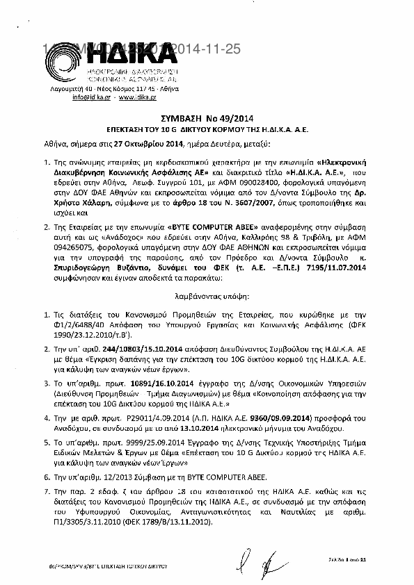 1. ΕΠΕΚΤΑΣΗ ΤΟΥ 10 G ΔΙΚΤΥΟΥ ΚΟΡΜΟΥ ΤΗΣ ΗΔΙΚΑ ΑΕ.ΑΡ.ΣΥΜΒ.49/27-10-14