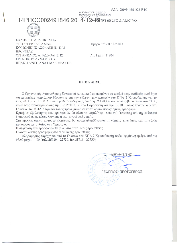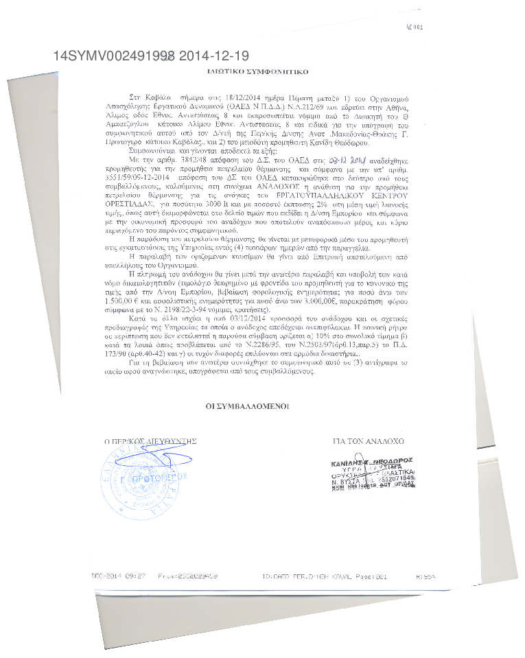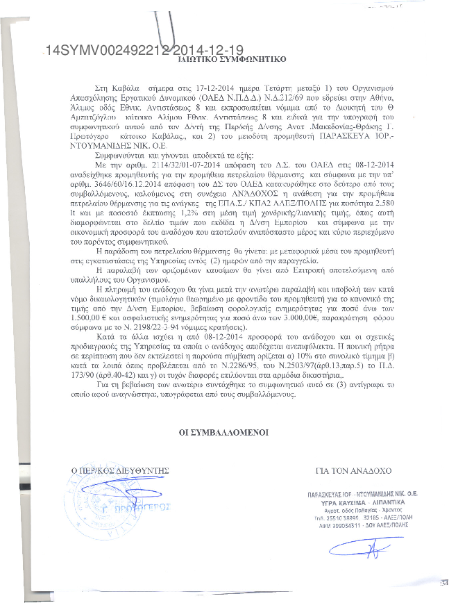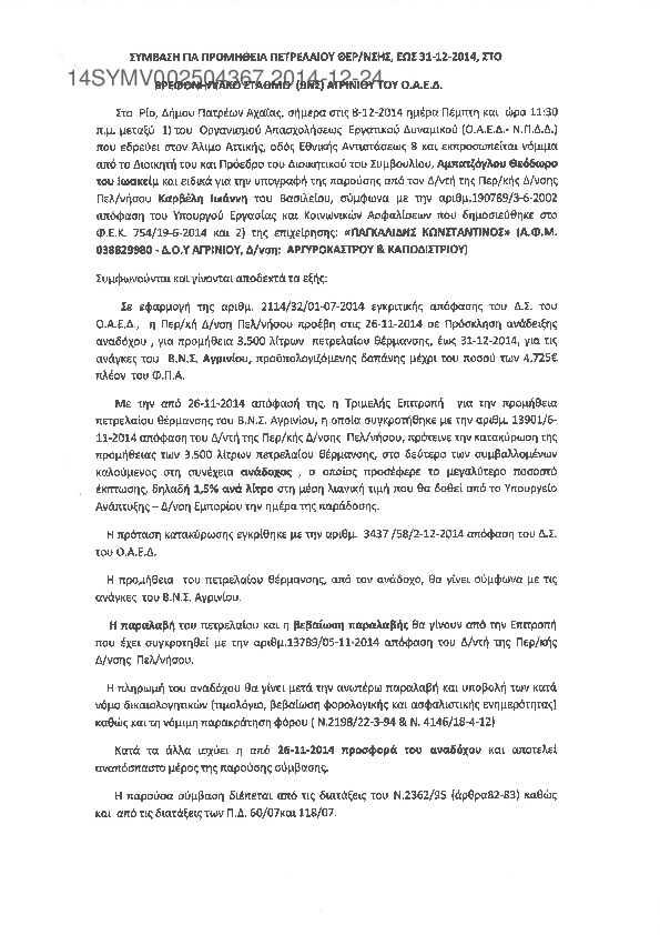 10. Σύμβαση προμήθειας πετρελαίου θέρμανσης στο Βρεφονηπιακό Σταθμό Αγρινίου του ΟΑΕΔ