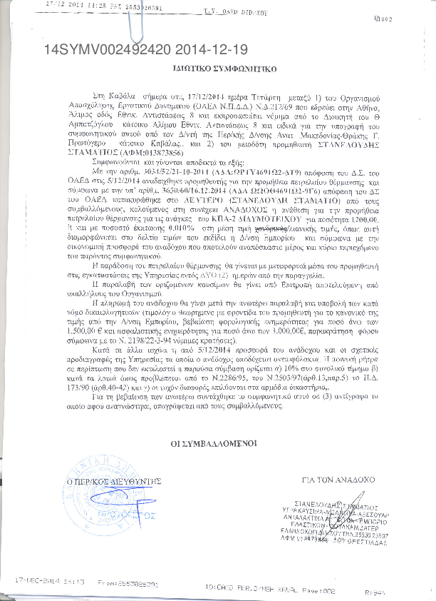 2. ΠΕΤΡΕΛΑΙΟ ΘΕΡΜΑΝΣΗΣ ΕΡΓ. ΚΕΝΤΡΟΥ ΔΙΔΥΜΟΤΕΙΧΟΥ