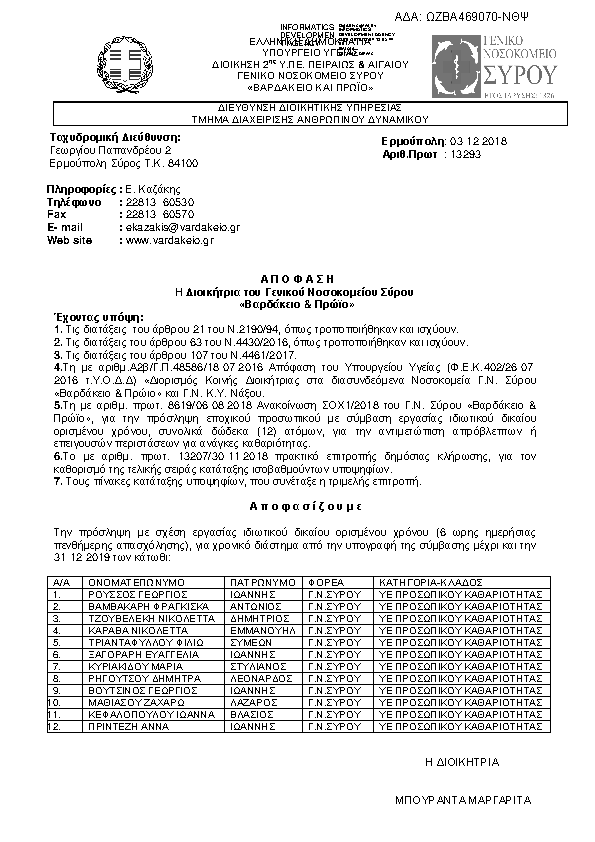 ΓΕΝΙΚΟ ΝΟΣΟΚΟΜΕΙΟ ΣΥΡΟΥ \\ ΔΙΟΙΚΗΤΗΣ