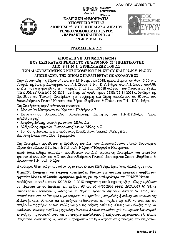 ΓΕΝΙΚΟ ΝΟΣΟΚΟΜΕΙΟ ΣΥΡΟΥ \\ ΔΙΟΙΚΗΤΙΚΟ ΣΥΜΒΟΥΛΙΟ
