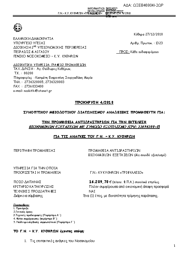 7. ΠΡΟΚΗΡΥΞΗ 04/2018 ΑΝΤΙΔΡΑΣΤΗΡΙΩΝ ΒΙΟΧΗΜΙΚΩΝ ΕΞΕΤΑΣΕΩΝ ΜΕ ΣΥΝΟΔΟ ΕΞΟΠΛΙΣΜΟ