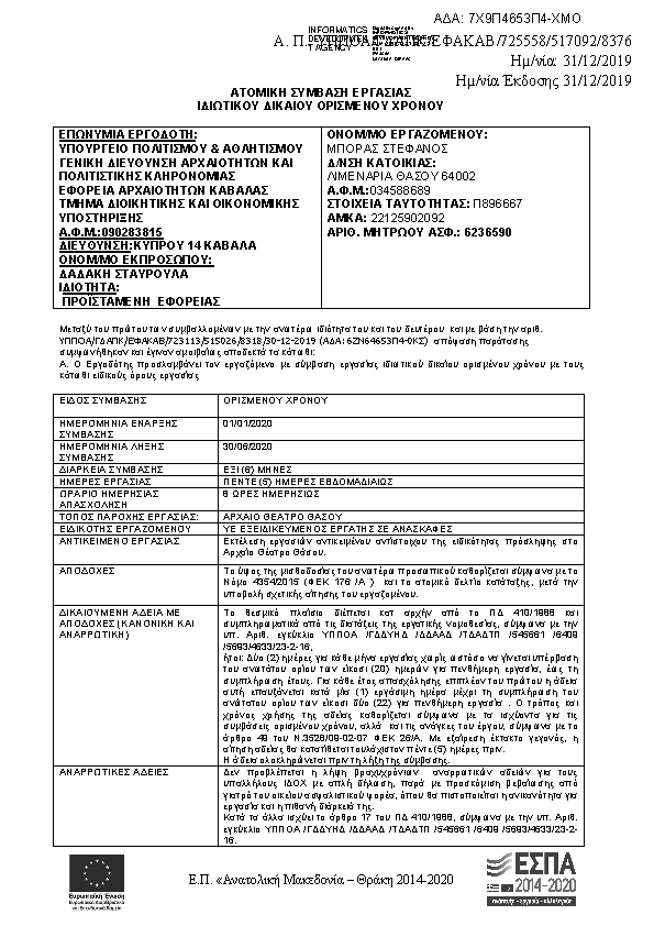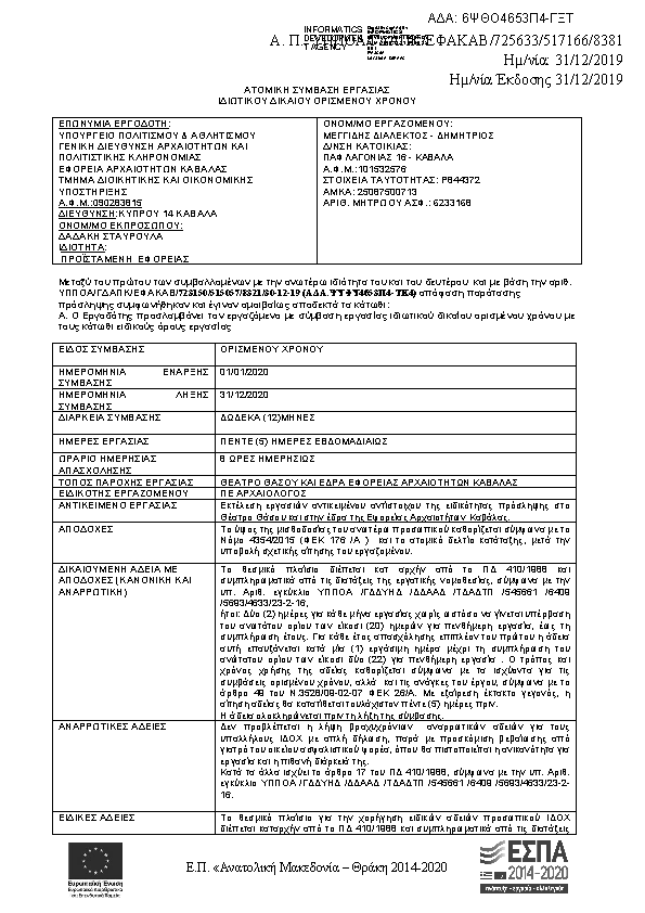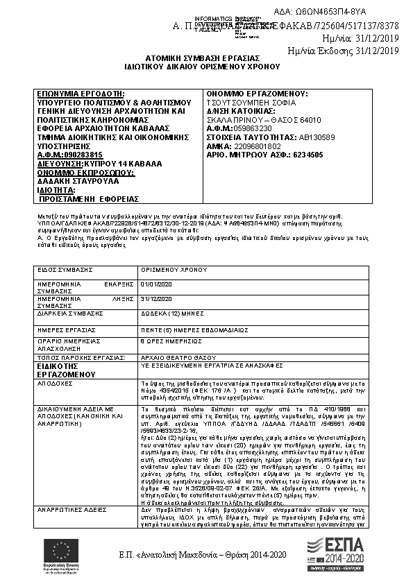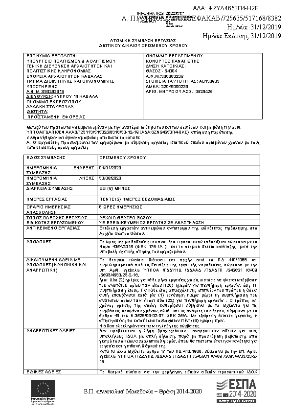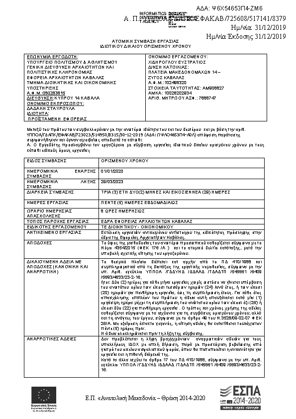 5. ΑΤΟΜΙΚΗ ΣΥΜΒΑΣΗ ΕΡΓΑΣΙΑΣ ΙΔΙΩΤΙΚΟΥ ΔΙΚΑΙΟΥ ΟΡΙΣΜΕΝΟΥ ΧΡΟΝΟΥ ΠΑΪΚΟΥΛΗΣ ΝΙΚΟΛΑΟΣ