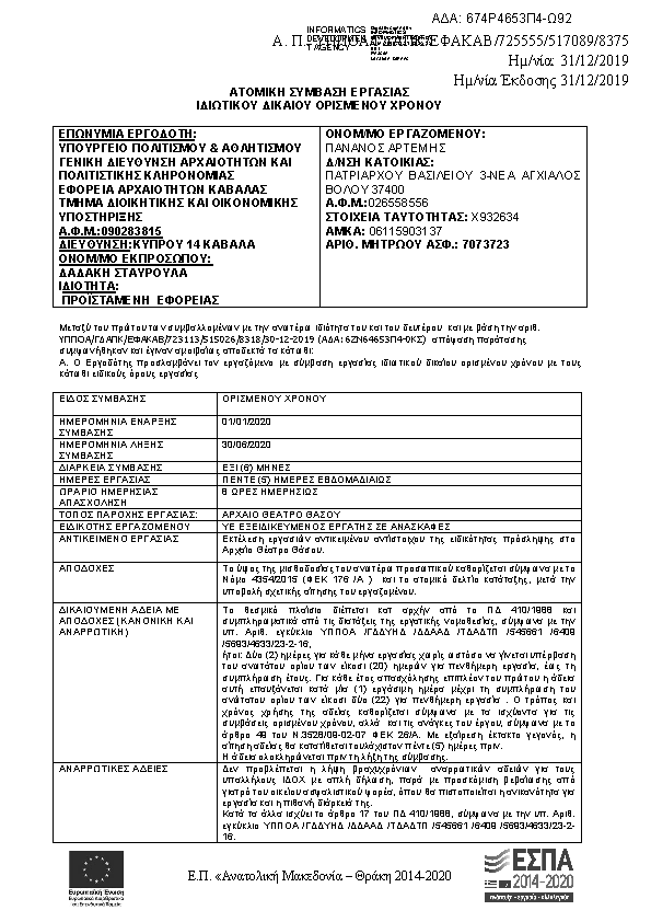 10. ΑΤΟΜΙΚΗ ΣΥΜΒΑΣΗ ΕΡΓΑΣΙΑΣ ΙΔΙΩΤΙΚΟΥ ΔΙΚΑΙΟΥ ΟΡΙΣΜΕΝΟΥ ΧΡΟΝΟΥ ΠΑΝΑΝΟΣ ΑΡΤΕΜΗΣ